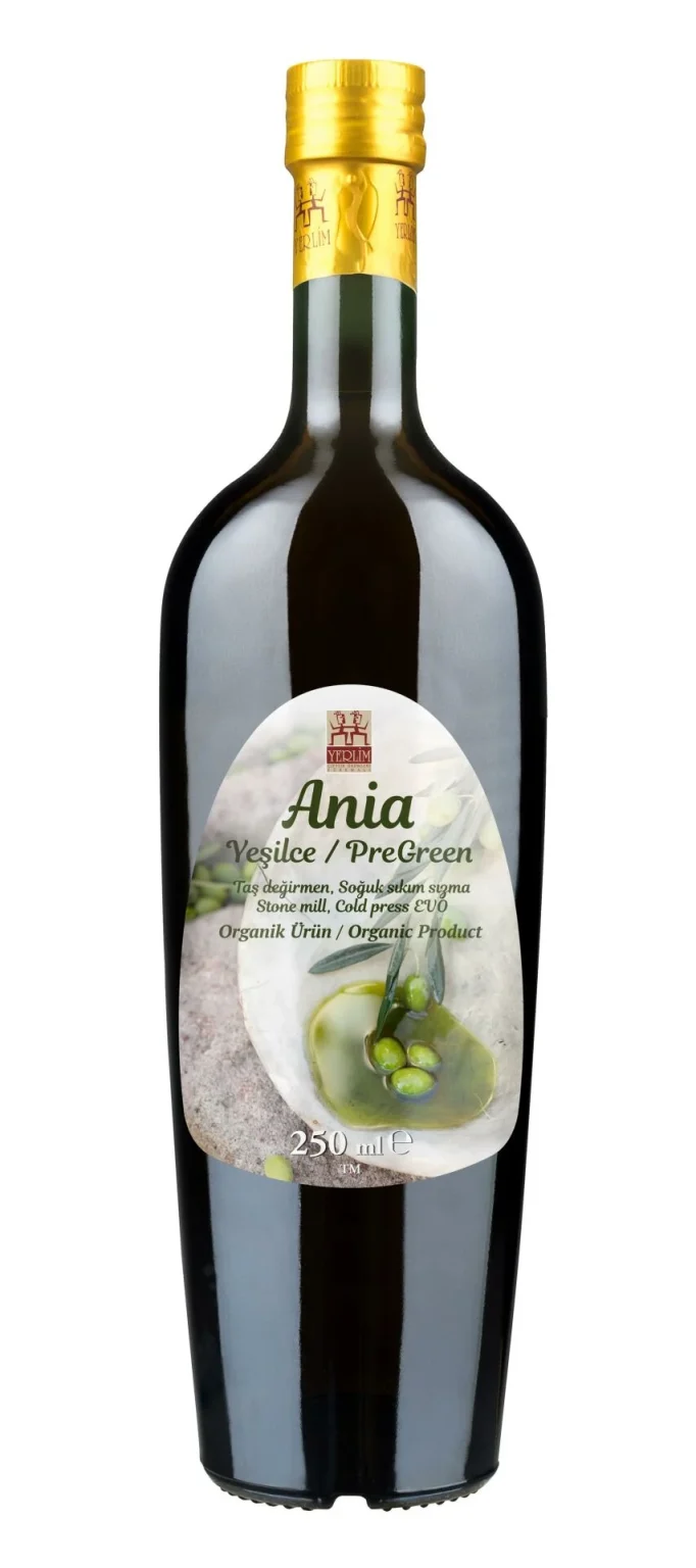 YERLİM/ANIA Erken hasat/soğuk sıkım yağımızın ismini zümrüt yeşili zeytinlerin renginden esinlenerek; ‘’Yeşilce /Pregreen’’ verdik.